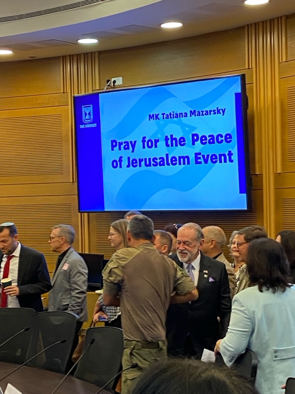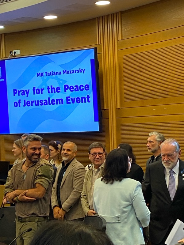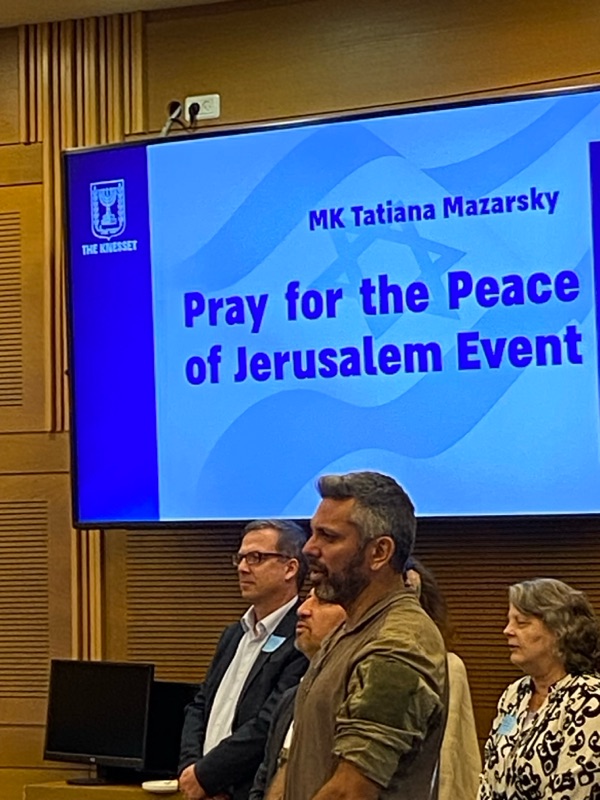 Prayer at the Knesset! Galya Hall and Steve and Laurie Martin from CFI USA were honoured to attending the 'Pray for the Peace of Jerusalem' event at the Knesset today, initiated by MK Tatiana Mazarsky.
