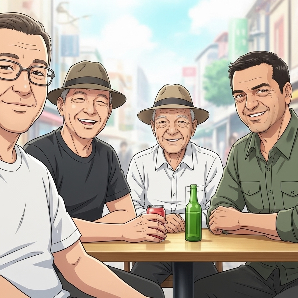 On Ben Yehuda Street in Jerusalem (L-R) Steve Martin, David Peterman, Avraham and David Saidian