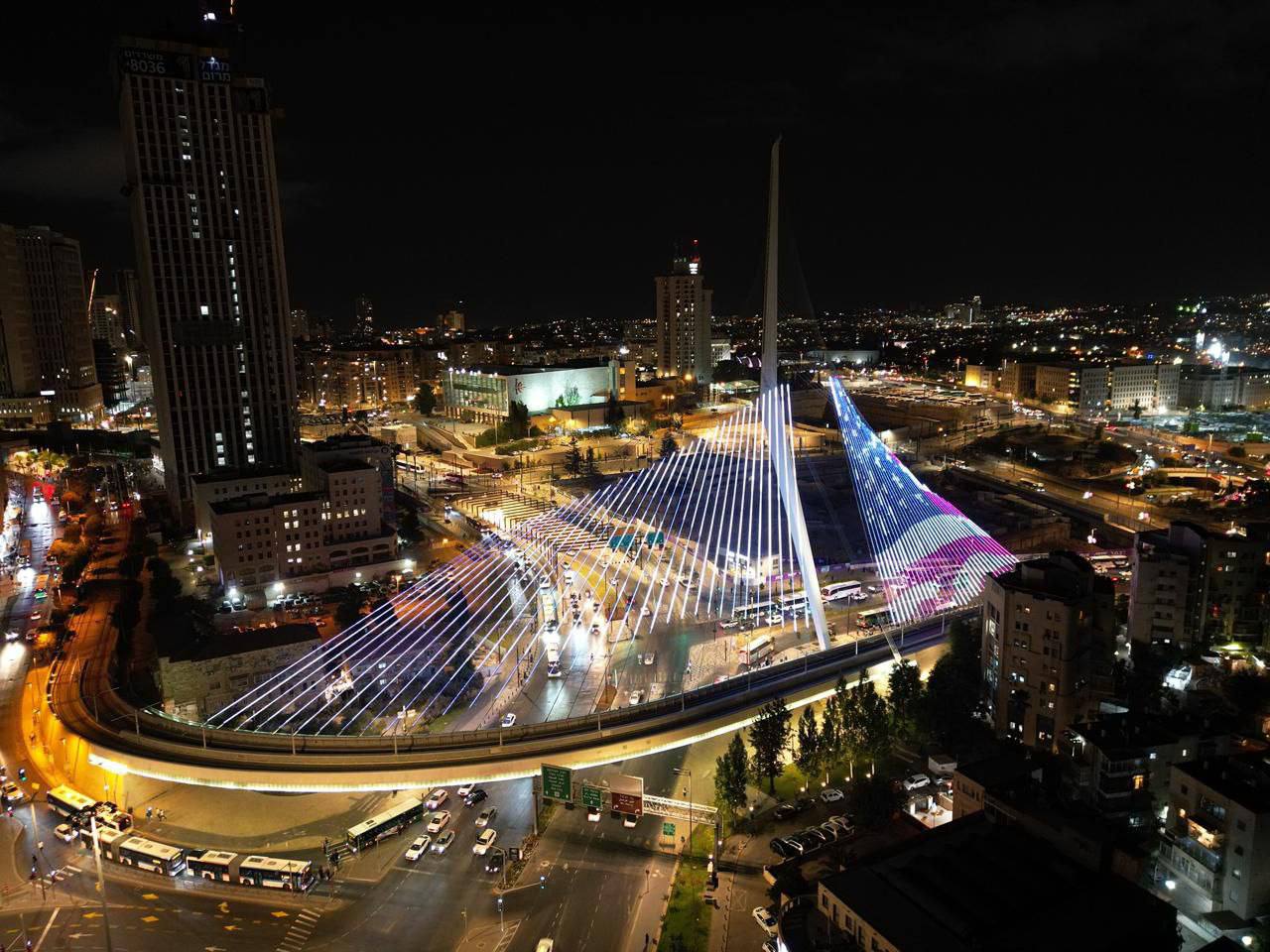 Jerusalem’s light train rail bridge, locally known as “David’s Harp”.