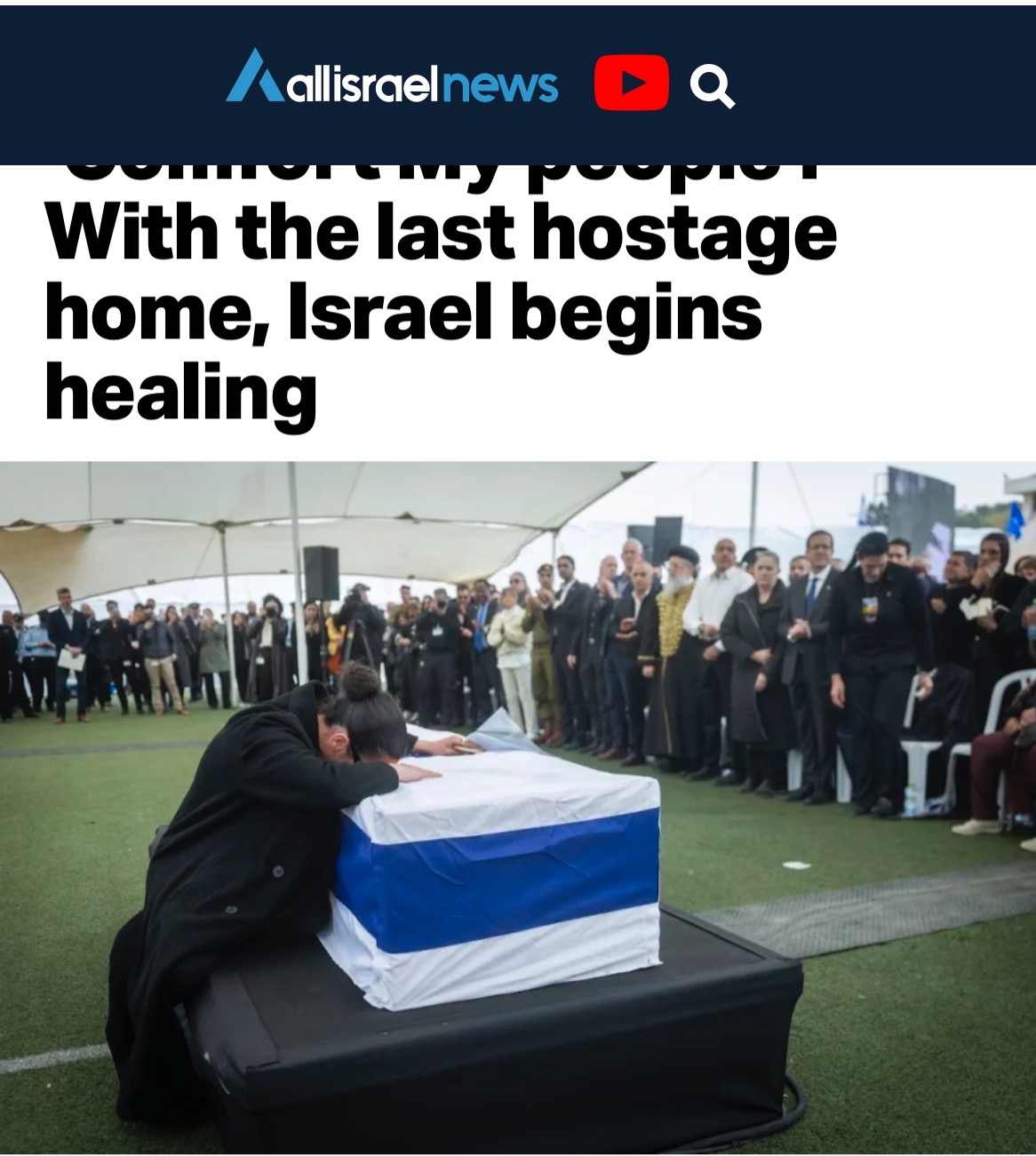 ‘Comfort My people’: With the last hostage home, Israel begins healing