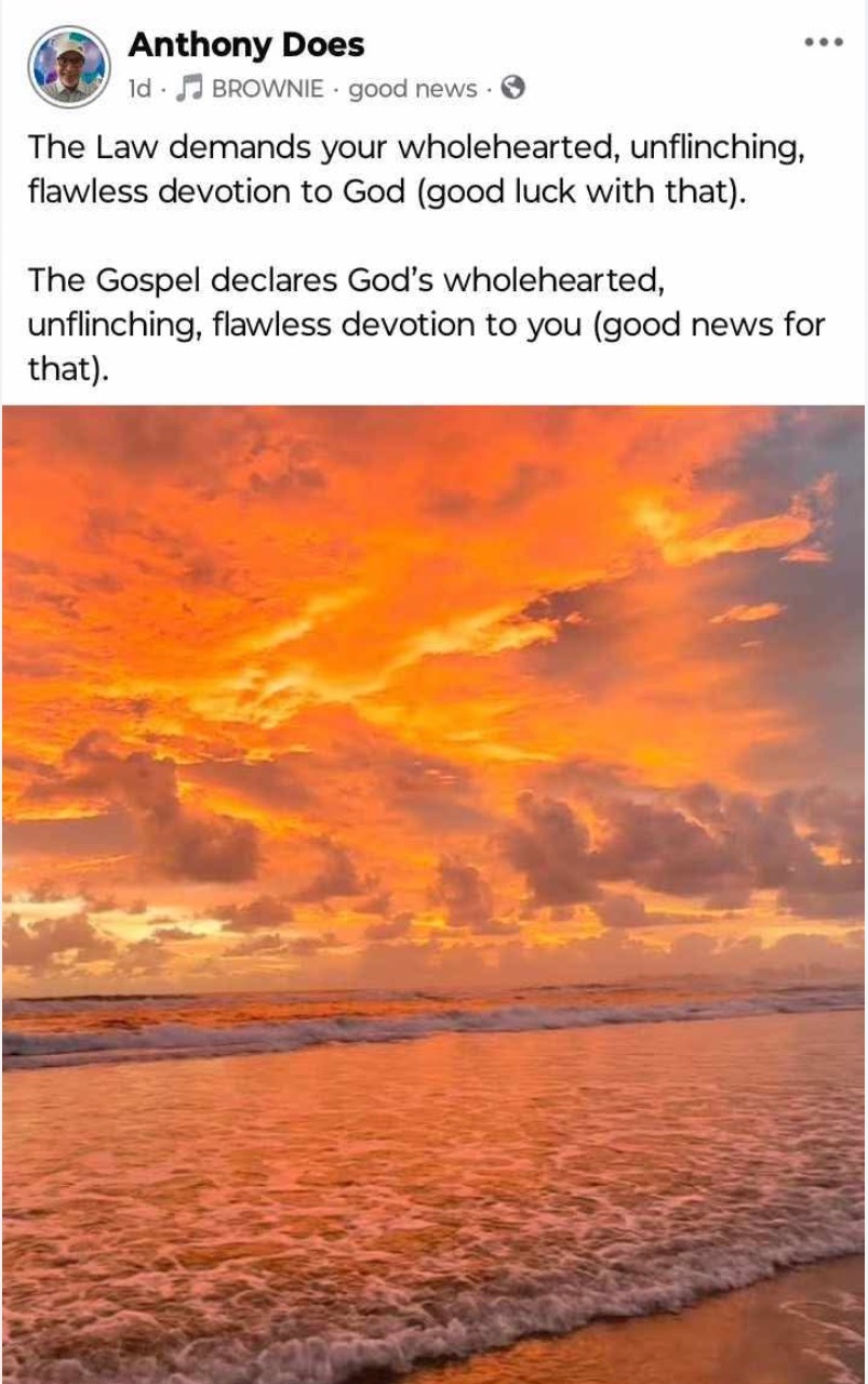 The following was sent to me via “Messenger” from my friend, Harlan Wall, in Toronto, Canada, which I found very good. He had seen this Facebook post by Anthony Does (address unknown) and gave his response.
