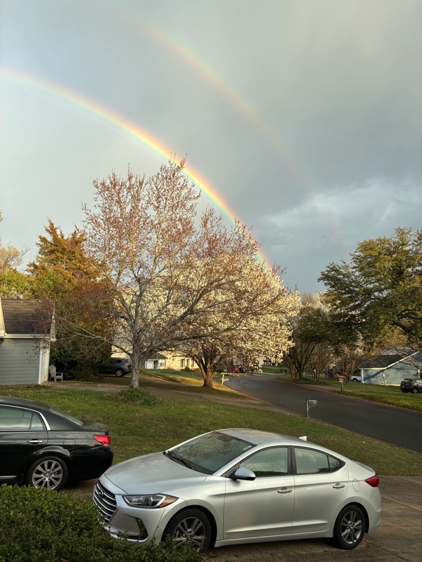 A double rainbow near our home in Charlotte, North Carolina on March 7, 2026 at 6:30 pm.
