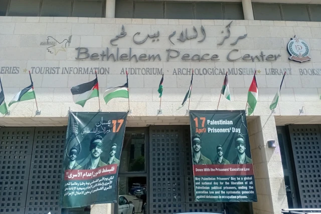 I was walking through Manger Square in Bethlehem when I noticed a poster hanging from the Bethlehem Peace Center. It read: